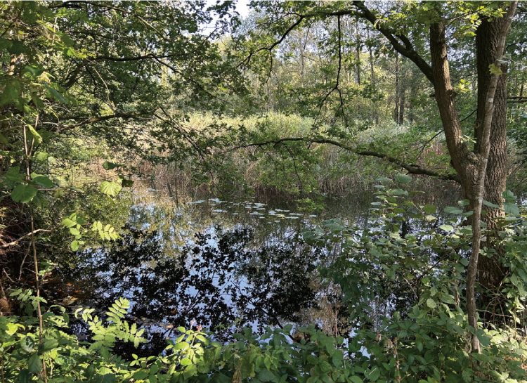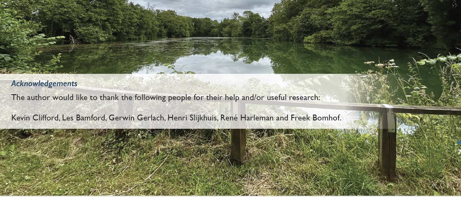 There was one specific location I wanted to find. To get there I had to retrace my steps through the maze of dykes and former ponds, back to Fish Farm Road. I walked north, crossed the outlet of a stream and walked across a field towards a wall of reeds. It was difficult to recognise it from the historical maps, since the shape and size of the ponds had completely changed due to sand extraction in the 1970s. But this was still the place, the birthplace of The Bishop. The water was crystal clear, the bottom a sandy light brown and the lake was surrounded by mature trees and bushes. This truly was the place where history was made. But how did it start here, and more importantly, why?