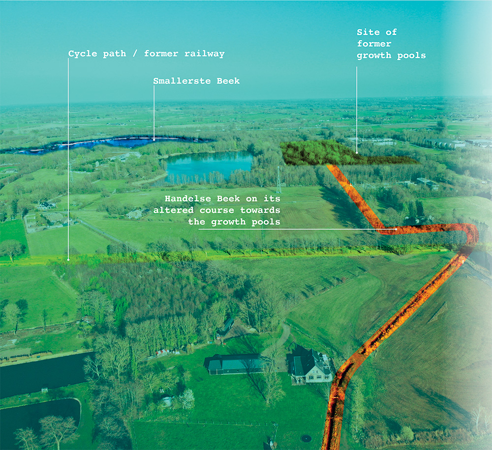 Enter the Heidemaatschappij, which was looking for an area with clean, oxygen-rich streams and enough natural fall to repeatedly empty and fill up fishponds. The Smallertse Beek had slightly warmer water because of its long run above ground from its source (although at the source water from seepage streams is typically a very constant eight degrees Celsius throughout the year) and was therefore used to fill a series of spawning and stretching ponds, used for spawning and initial growth of the young carp.